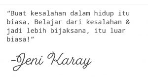 Dalam proses pendewasaan, acapkali ada beberapa keputusan yang salah kita ambil dalam hidup. Entah skalanya besar atau kecil. Entah kesalahan itu mengakibatkan kita nangis, atau buat kita merasa terpuruk. Kesalahan bagi saya adalah proses pembelajaran dalam hidup. Kesalahan yang dibuat oleh dirimu sebenarnya adalah guru terbaik untuk membuatmu lebih bijaksana.